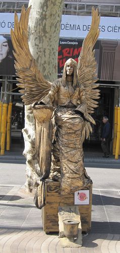La Rambla是一條購物街,整條街兩邊都是商店和餐廳,中間有寬寬的行人徒步區,兩邊則是賣各種商品的攤子,和表演的街頭藝人