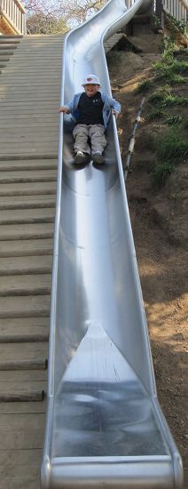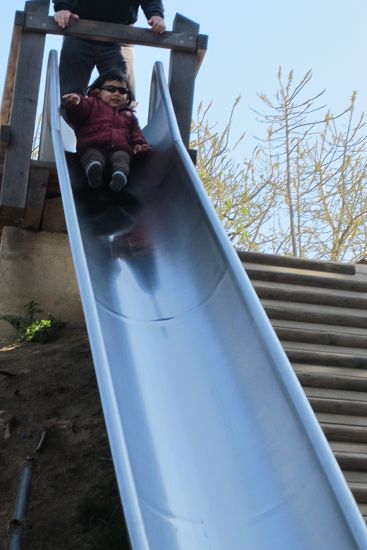 參觀完碉堡,我們一路從山頂找路走下山。這裡很多公園晃,還發現沿著山坡蓋的超長溜滑梯。爹娘兄妹們全都滑過三次以上滑得不亦樂乎,Leia一點都不怕呢!