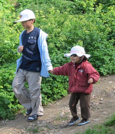 大哥儘找小路鑽,小妹也要跟,於是兄妹倆手牽手鑽小路