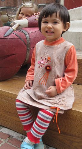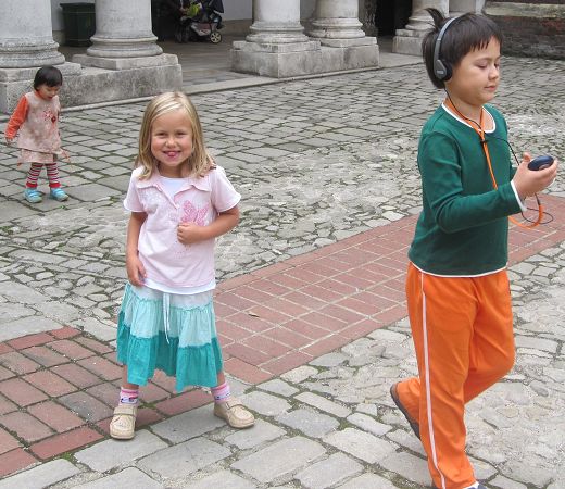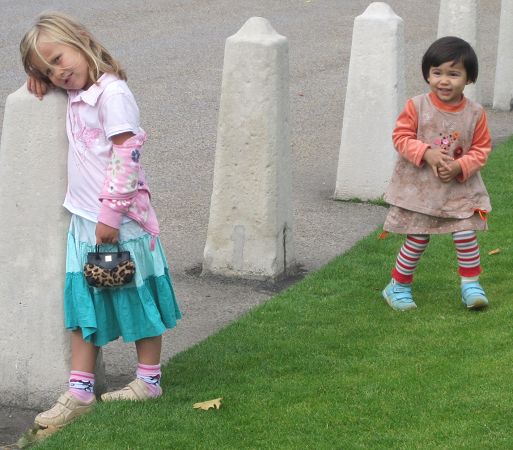 這裡是clock court。這個小廣場可以讓小孩子們跑跑跳跳,他們玩得很高興。今天Alex喜歡跟著Luka跑,Leia當然也是,Luka看起來也挺有大哥樣呢!