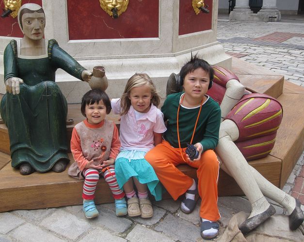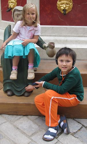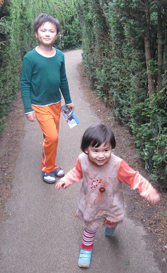 好不容易等到參觀完宮殿,小朋友們迫不及待想進迷宮去,不過已經過中午,大人們說要先吃飯,他們只好乖乖聽話。吃完當然就往迷宮花園去囉。這個迷宮不太難,一下子就到中心了,所以我們又重新走過好幾次。