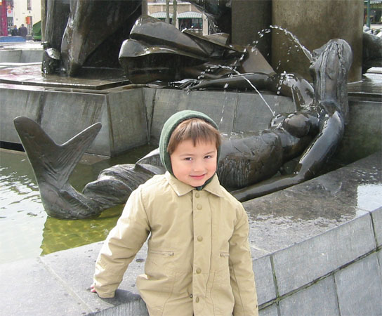 Luka在這個ㄋㄟㄋㄟ會噴水的美人魚前解決午餐