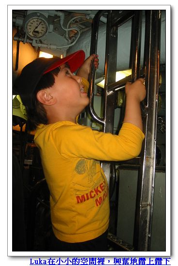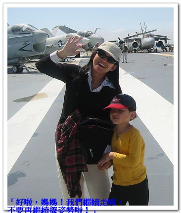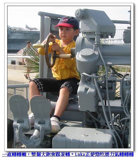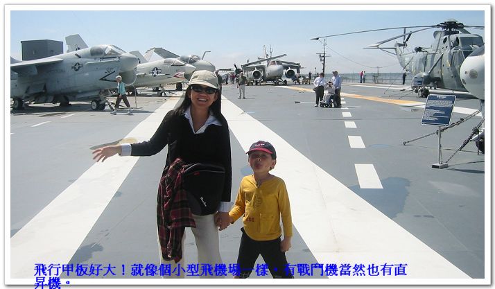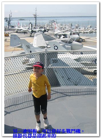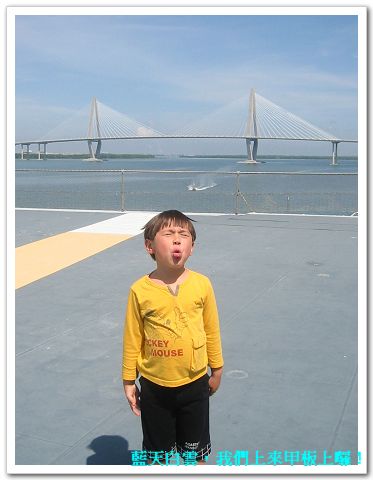 4/10/08 - 這天的計畫是到Patriots Point Naval & Maritime Museum。這裡是一個港口,停了四艘已經自海軍退役的不同種軍艦 -- 航空母艦、潛水艇、攻擊戰艦(destroyer)、和海岸巡防艦(Coast guard cutter)。考慮到Luka應該會對這些軍艦很有興趣,我們兩個大人也從沒看過真正的航空母艦和潛水艇,更別說上去裡面參觀了,於是前一晚無異議通過今天的行程。我們早上十一點左右到,離開時已經下午五點,這四艘軍艦要全部走完真的可以耗上一整天,好大!Luka果然很喜歡這裡,回家後他最喜歡的地方從Clearwater beach變成Charleston有航空母艦的地方。