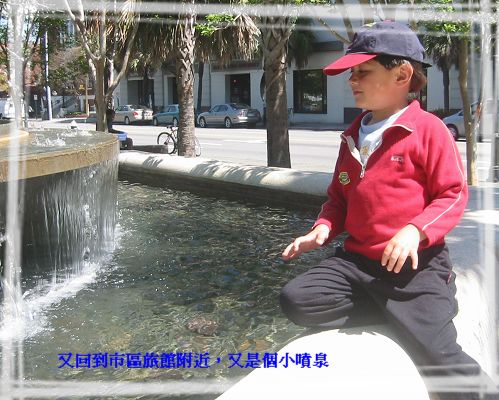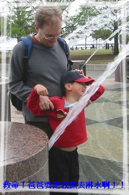 4/9/08 - 接著又沿河岸一路往北走到Waterfront Park。這裡夏天應該會很熱鬧,因為有好幾個噴水池,小朋友應該會玩水玩得很樂。不過四月初氣溫雖然宜人,卻不適合把衣服弄濕,或上衣脫掉玩水,所以我們只是走走看看,沒多久就離開了。