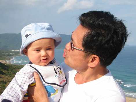 來,阿公親親,阿公可不輕易玩親親的喔!我很喜歡這張照片 Luka和阿媽