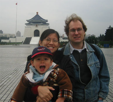 2/2/05 - 延了兩天,終於到達台北,不過能在台北晃的時間只剩一天,於是早上去中正紀念堂走走,看憲兵交接,下午去台北101和新光三越看兩個展覽•不過那一天台北寒流來,到處濕濕冷冷風又大,到了室內還沒有暖氣,下午回雅慈家之後沒多久,安迪就躲到被窩去了!晚上想逛士林夜市的計畫也完全不予考慮!