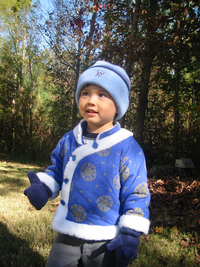 真的是凜冽的寒風,Luka通常不讓媽媽戴帽帽的,在頭髮被風吹得不斷亂飛一陣子後,竟然自己要求要戴帽帽呢!
