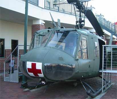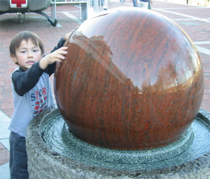 左邊是河邊科學博物館前的一顆以水力滾動的大理石球。不過Luka當然是不管這顆球為什麼會一直滾的原理,只管一直推球和玩水。右邊也是在科博館前的一台軍用救護直昇機。Luka正興奮地要上機找爸爸一起開直昇機。