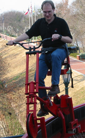左邊是在遊客中心。右邊是從遊客中心走到不遠處的Savanna河邊公園路上。這條鐵路很酷地直接通到馬路中央,本來以為是像舊金山那樣子的街頭纜車,後來發現不是,是火車用的,而且看起來好像還有火車在用,難道火車來時,車子就跟火車一起走在路上啊?