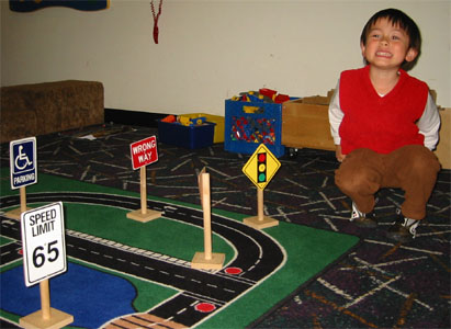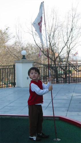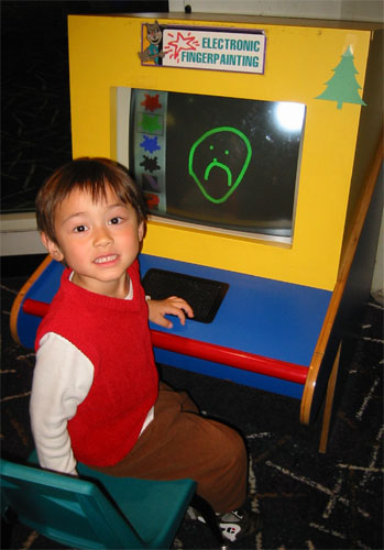 還好很快就發現當高爾夫球童也蠻好玩。接著又發現這個手觸螢幕繪圖機,畫生氣的媽媽、高興的、我們的家,後來還找到Luka深愛的交通標誌們,終於暫時忘記不能在空中繞一圈的失望感。後來走出科博館,Luka當然又一直問著為什麼那個人不給他坐的問題,不過這個科博館還挺好玩的