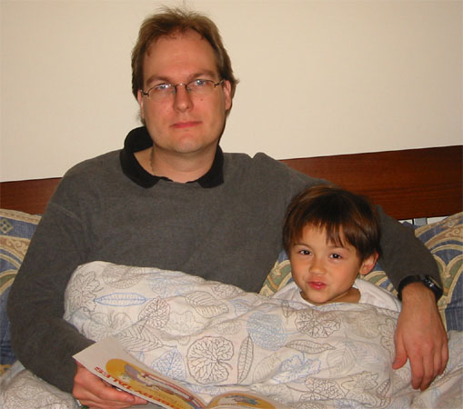 星期天晚上,Luka很舒服地躲進我們家的被窩,高興地聽爸爸每晚的床邊故事,看起來好滿足