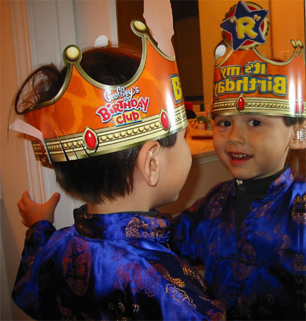媽媽後來又去挖出這頂「王冠」,Luka這小皇帝又更得意了,站在鏡子前面欣賞了很久