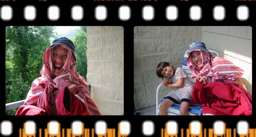 來到當天的旅館後,爺爺開始忙著燒水泡茶,Luka跟阿媽則開始耍起寶。阿媽想坐在陽台看風景,可是怕被太陽曬黑,於是兩個人開始想辦法把阿媽包好,然後再把椅子挪到最沒陽光的地方...大功告成,可以開始看山看水了!