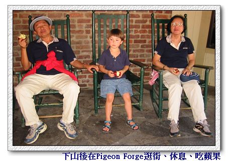 從山林小徑出來後,我們就離開Great Smoky Mountain,往車程約20分鐘外的購物小鎮Pigeon Forge開去,因為聽說那兒有一個蠻古老的磨坊。不過星期天磨坊沒開放,我們就在小鎮上逛逛趣味小店,順便吃水果、補充水分。