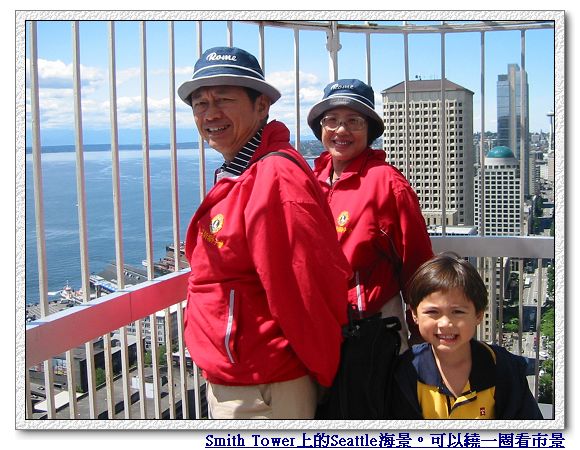 不管Luka手中怎麼也磨不完的蘋果,我們決定沿著海岸碼頭走。路上看到有趣的店就進去逛一逛,就這樣一路走到Smith Tower,然後到35樓的觀景台上去看西雅圖市景和海景。不像芝加哥或紐約,西雅圖市區沒有很多高樓大廈,總共42樓的Smith Tower雖然不是最高的,不過已經算是蠻高的,而且是西雅圖第一棟摩天大樓,於1914年完工。
