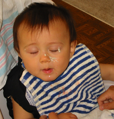 5/30/03 - 看起來像鳥屎掉在Luka臉上!其實是他的早餐啦