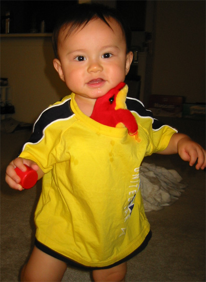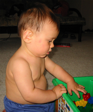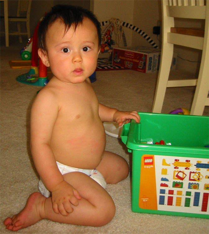 6/13/03 - Luka的新玩具,不過對他而言太早了,他現在只知道怎麼"吃"