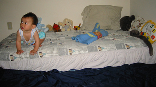 6/9/03 - Luka終於有床睡囉! 不過第一晚Luka摔下床N次,第二天床邊就多了護欄了