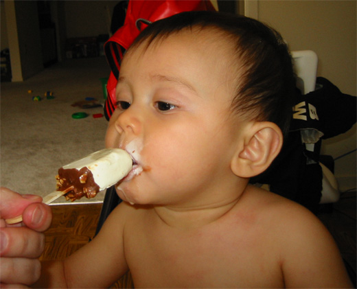 6/14/03 - 嗯,這是什麼?!冰淇淋? 先嚐嚐..... 好吃,我還要!!