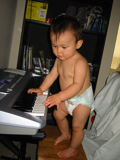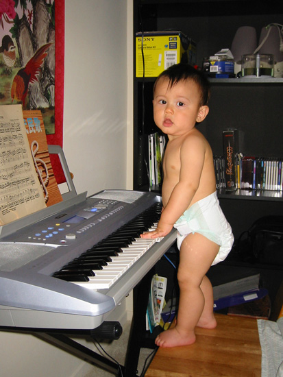 6/29/03 - 小小鋼琴家 "敲" 鍵盤的姿勢!