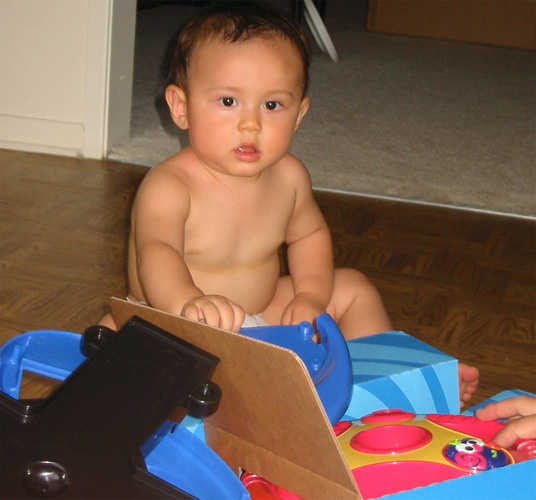 7/7/03 - Luka的第一個生日禮物,來自德國的阿媽。耶!拆禮物囉!!