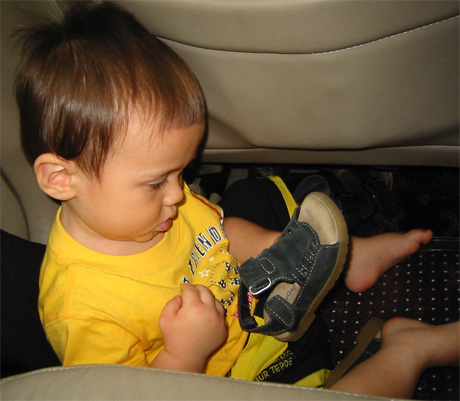 8/31/03 - 少了汽車嬰兒座椅,Luka非常快樂地在車子裡爬上爬下、鑽來鑽去,媽媽心裡倒是七上八下的!