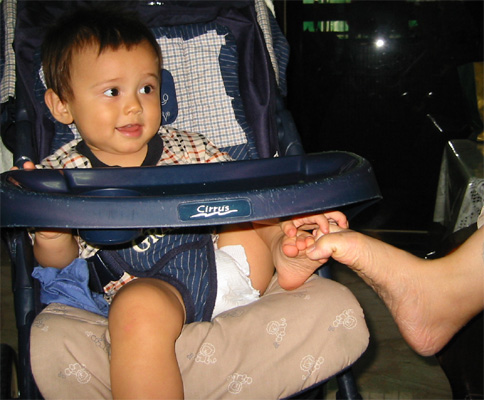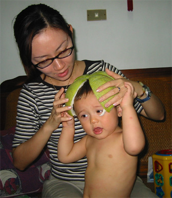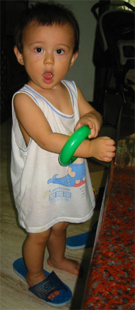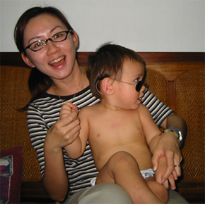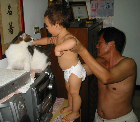 8/26/03 - Luka滿13個月,又回到 了台灣。這趟回台灣送了媽媽的阿公最後一程,我想Luka除了新奇,應該是感受不到多少悲傷的氣氛。不過最重要當然還是跟阿公、阿媽、大姨、大姨丈、和舅舅玩啦!