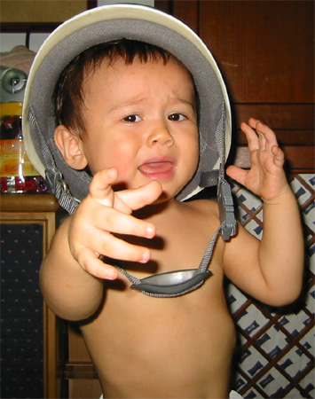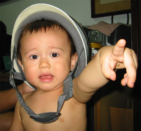 9/5/03 - Luka不太喜歡戴鋼盔的樣子