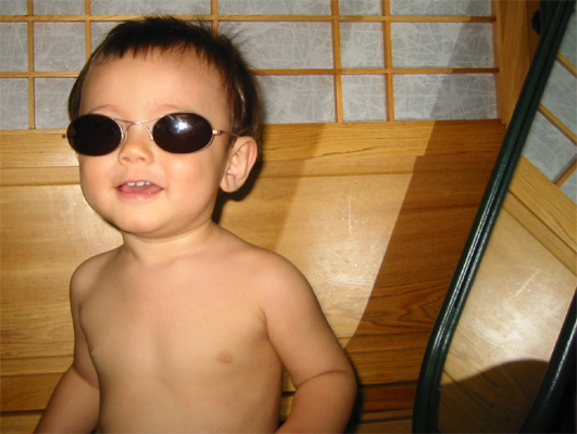 9/9/03 - 再帶上酷酷的墨鏡,照鏡子瞧瞧........嘿,挺帥的是吧?!