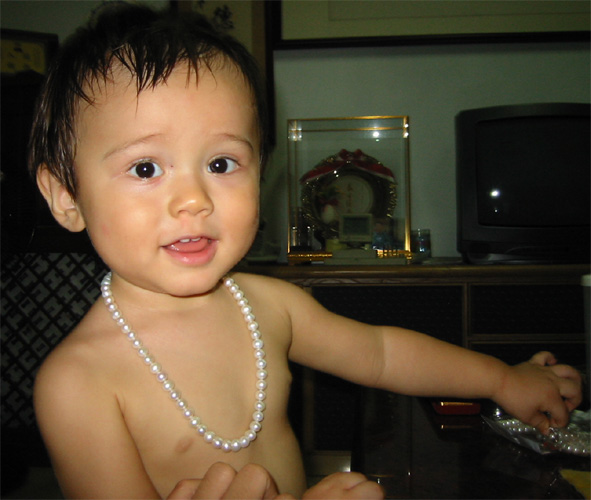 9/16/03 - 戴上珍珠後有沒有漂漂?Luka不斷被誤以為是小女生,有像嗎?! 嗯,很怪異的鞋子
