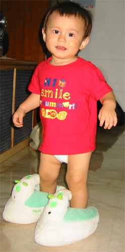 9/15/03 - 大姨送的新衣服和褲子,穿起來很像小男生,不再是小寶寶了。