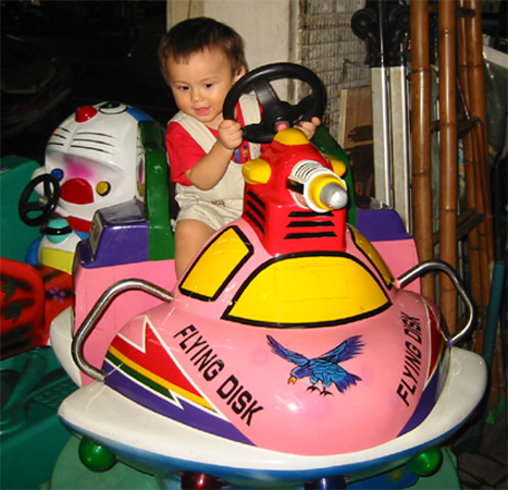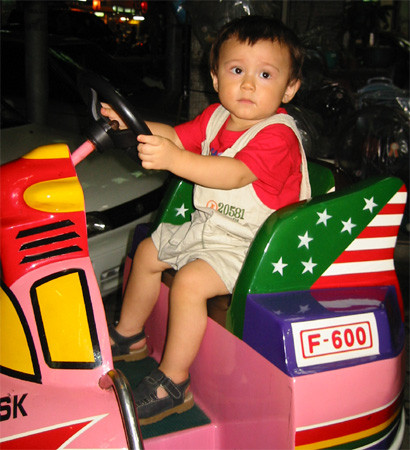 9/17/03 - Luka到後來非常喜歡坐這種電動車,只要在街上看到了,不讓他坐個2次以上,他絕不肯離開!還知道不投錢機器不會動呢!!