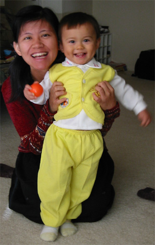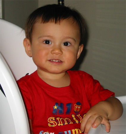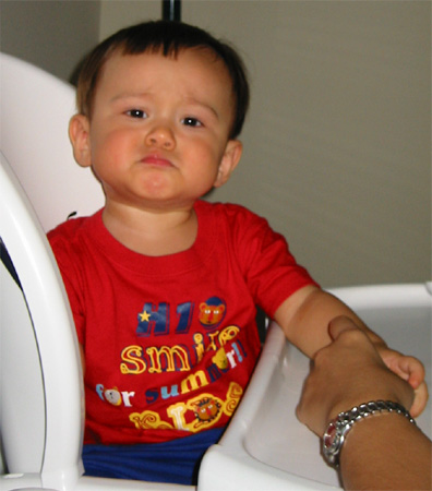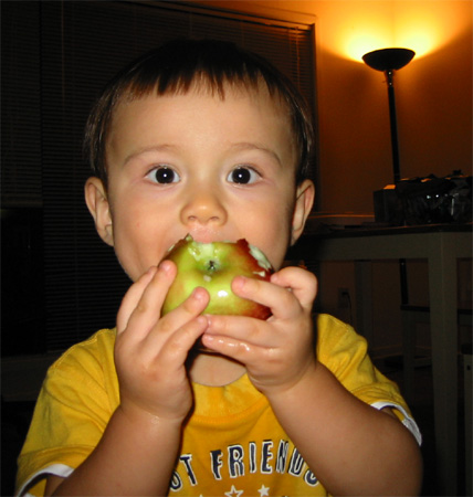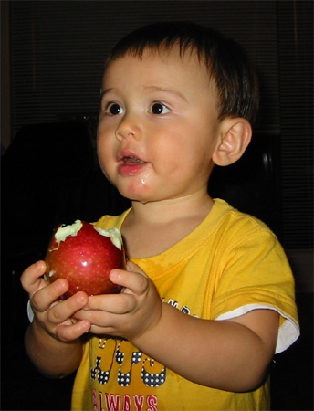 10/12/03 - Luka第一次自己抱著蘋果啃喔,還挺有模有樣的