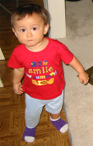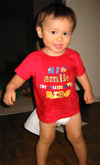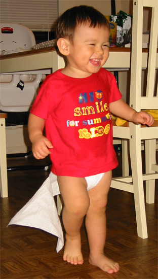 10/9/03 - 剛換完尿布,結果長了一條尾巴還不知道,還到處跑來跑去