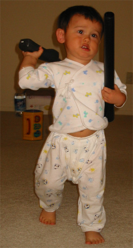 10/23/03 - 喀喳!看Luka雙節棍的厲害! 嘿嘿,看Luka的小肚肚和小肚臍 表情終於恢復正常了