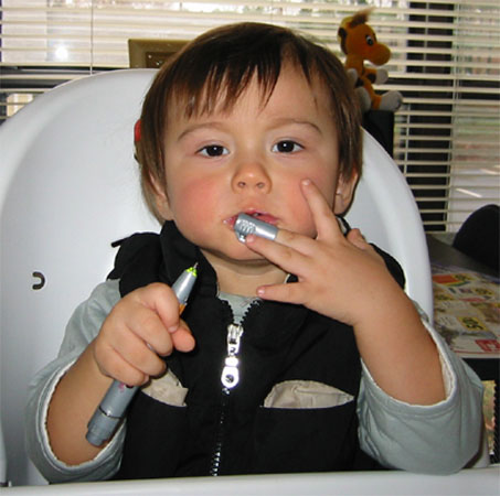 1/09/04 - 會發光的原子筆喔!不過蓋子好像比較好玩。