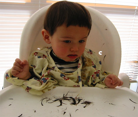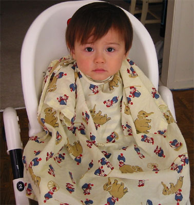 1/11/04 - 要剪頭髮了!瞧Luka的無辜樣....                                     剪好了,又是妹妹頭,還不錯吧!Luka好像以吐舌頭表示不贊同ㄋㄟ...
