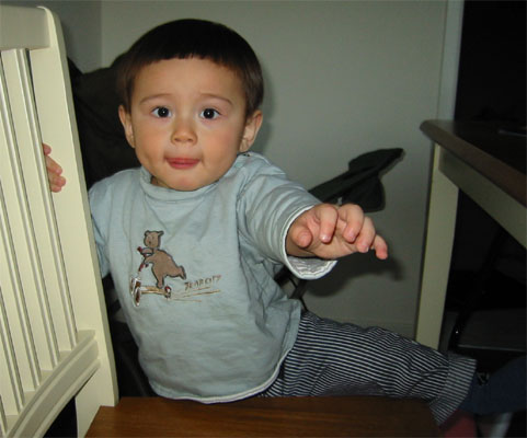 1/13/04 - Luka是個愛說話、愛唱歌、愛跳舞的寶寶,,而且表情、動作豐富喔。嗯,像不像在跳鋼管?