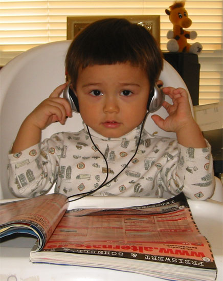 1/15/04 - 英勇的小獵人!......              呃,怎麼變小暴露狂了?!                 耳機、雜誌,夠有學問吧!