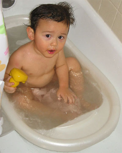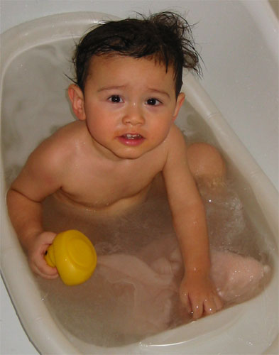 1/16/04 - 小巨人!     1/20/04 - Luka是小男生了,洗澡澡時不要照相啦!..... 好吧!趕快遮住重要部位