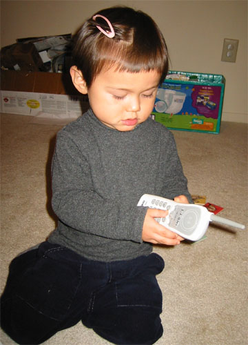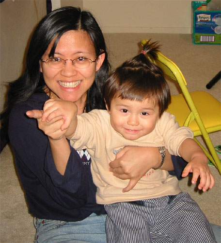 2/26/04 - 媽媽頭髮上的髮夾和手上的電話都被Luka搶了,還不斷要媽媽幫Luka夾頭髮!
