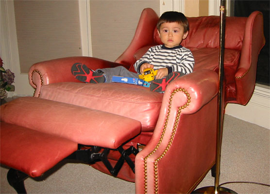 2/29/04 - 在朋友家,本來很舒服地坐在椅子上的是媽媽,不過不知不覺地竟被 3/7/04 - 哈哈笑的Luka