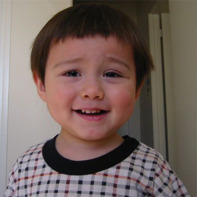 3/12/04 - Luka的小沖天炮,不過頭髮太軟了,一下子就滑掉了