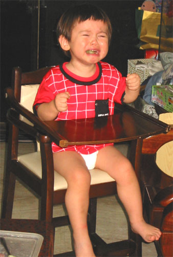3/25/04 - 唯有吃飯的哭相還是不變                      3/26/04 - 大人都跑去抗議,Luka也來應應景