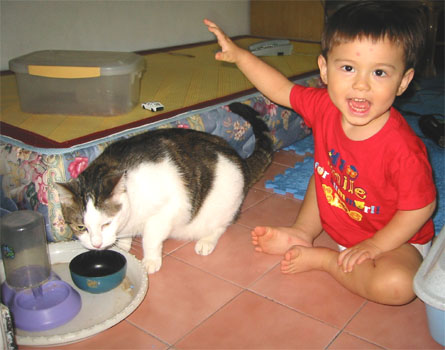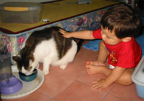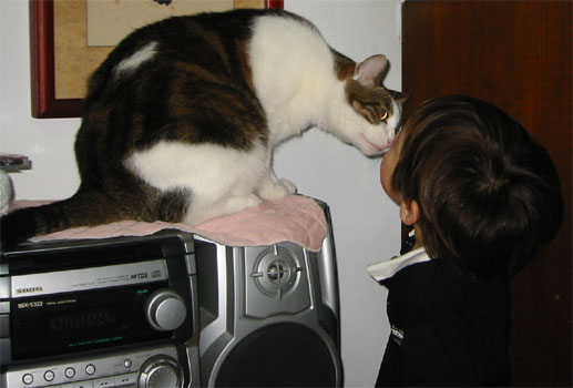 3/30/04 - 偶爾也採懷柔政策,親一個,咪咪不怕怕                           4/5/04 - 乖,咪咪快吃飯