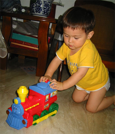 終於照完像了,可以開始玩阿姨送Luka的新玩具了