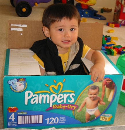 4/9/04 - 回到美國後要開始搬家囉!不過Luka幫忙的原則是媽媽裝箱,Luka就幫忙倒東西,媽媽倒東西,Luka就幫忙裝箱!