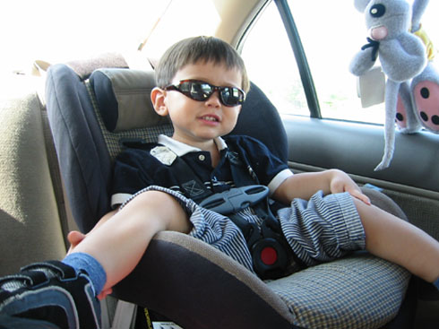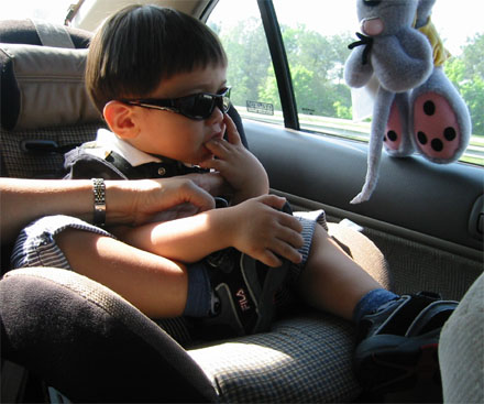 4/24/04 - 要開車去水族館玩囉!擺個酷酷的姿勢                                             不一會兒就原形畢露,吃起手來