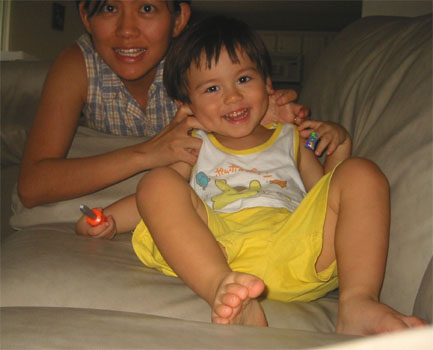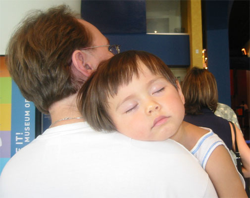 8/1/04 - 媽媽經營的理容院除了Luka外又多了一個客人! 本來帶Luka到Children museum要看美猴王的展覽,結果唯一的小朋友還沒進museum就睡著了