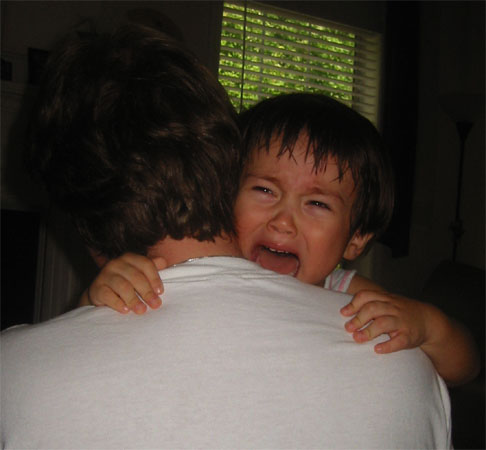 7/29/04 - 笑得更高興了! 呃....喜極而泣?!是Luka從爸爸背上摔下來了,很結實地咚一聲!還好地毯軟軟的